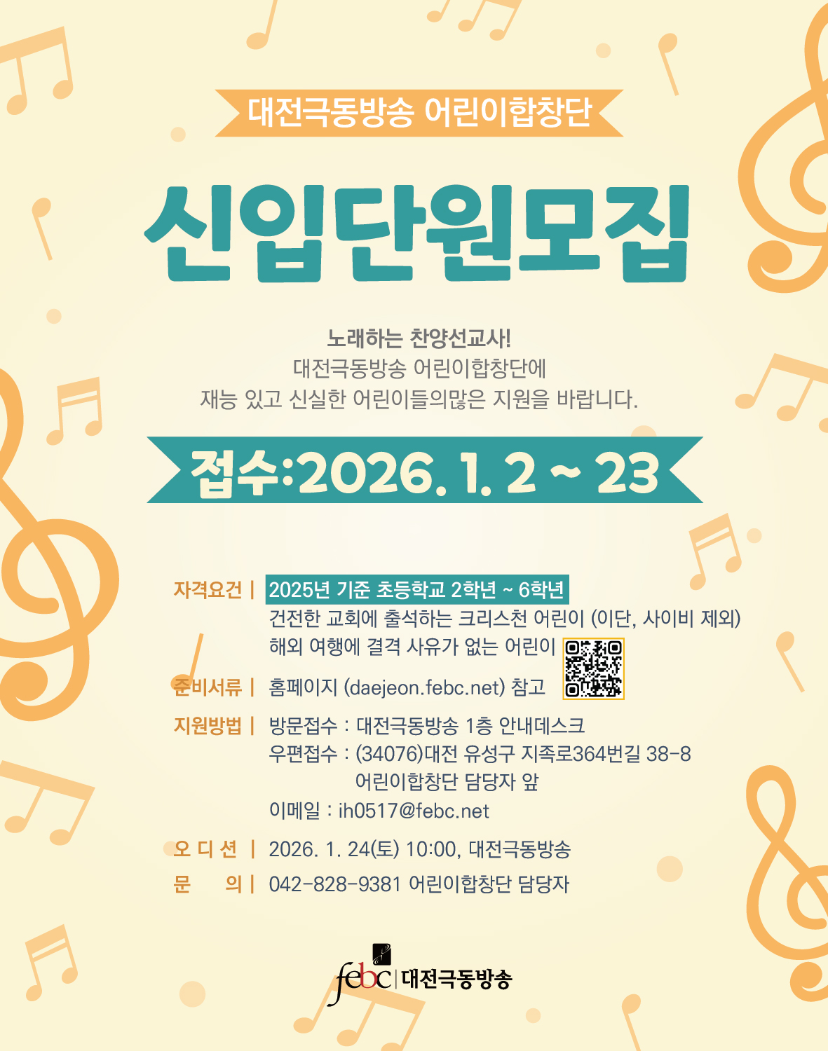 2026 광주극동방송 어린이합창단 신입단원 모집