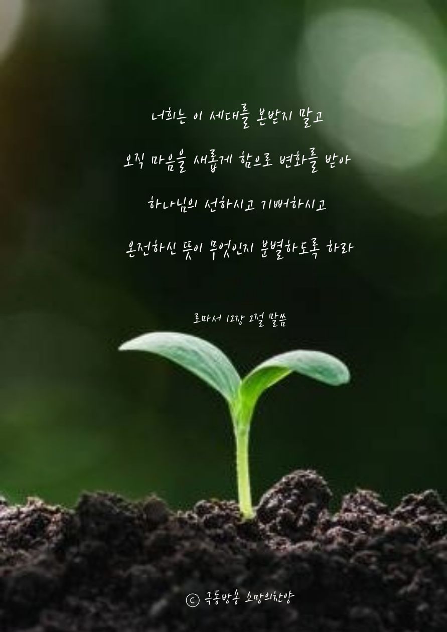 “너희는 이 세대를 본받지 말고 오직 마음을 새롭게 함으로 변화를 받아