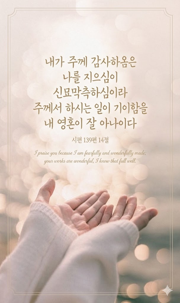 내가 주께 감사하옴은 나를 지으심이 신묘막측하심이라
