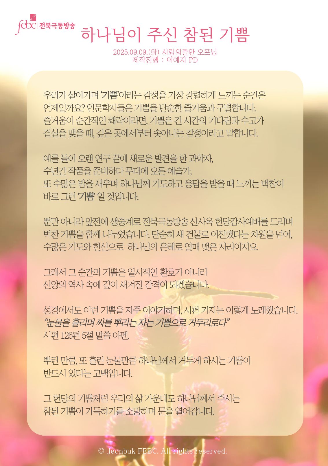 [전북] 25.09.09.(화) 사랑의뜰안 오프닝 "하나님이 주신 참된 기쁨"