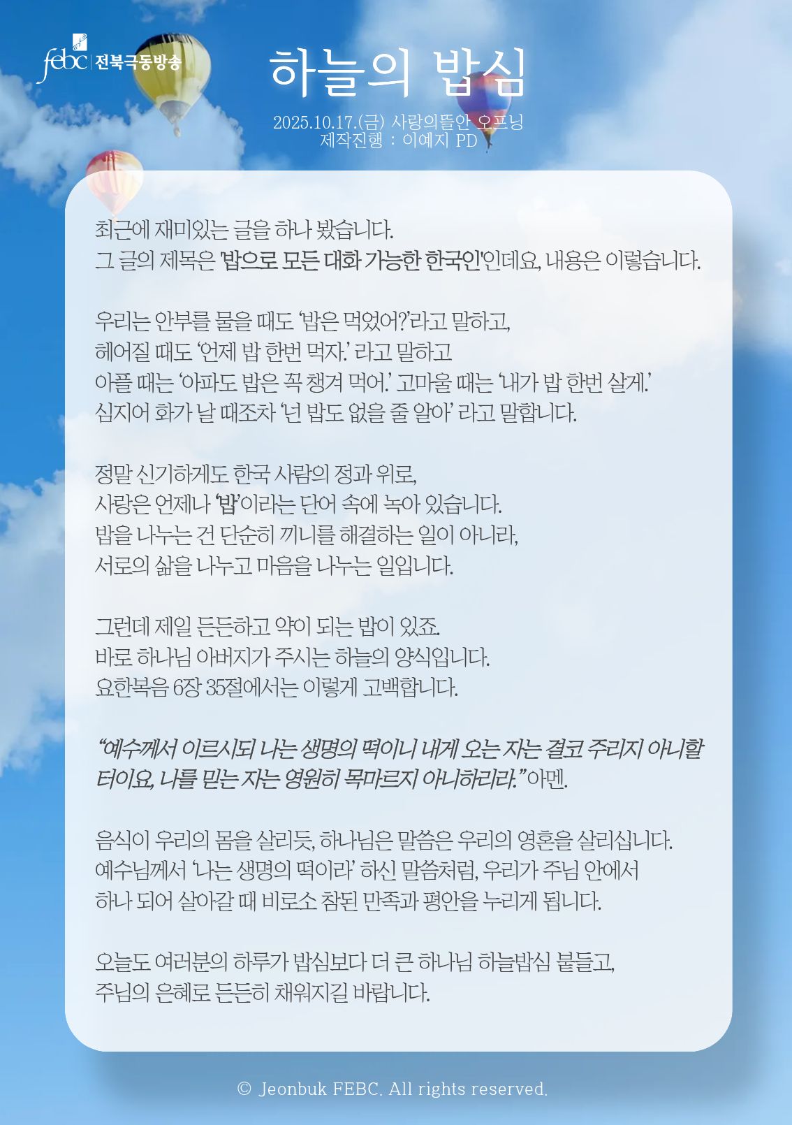 [전북] 25.10.17.(금) 사랑의뜰안 오프닝 "하늘의 밥심"