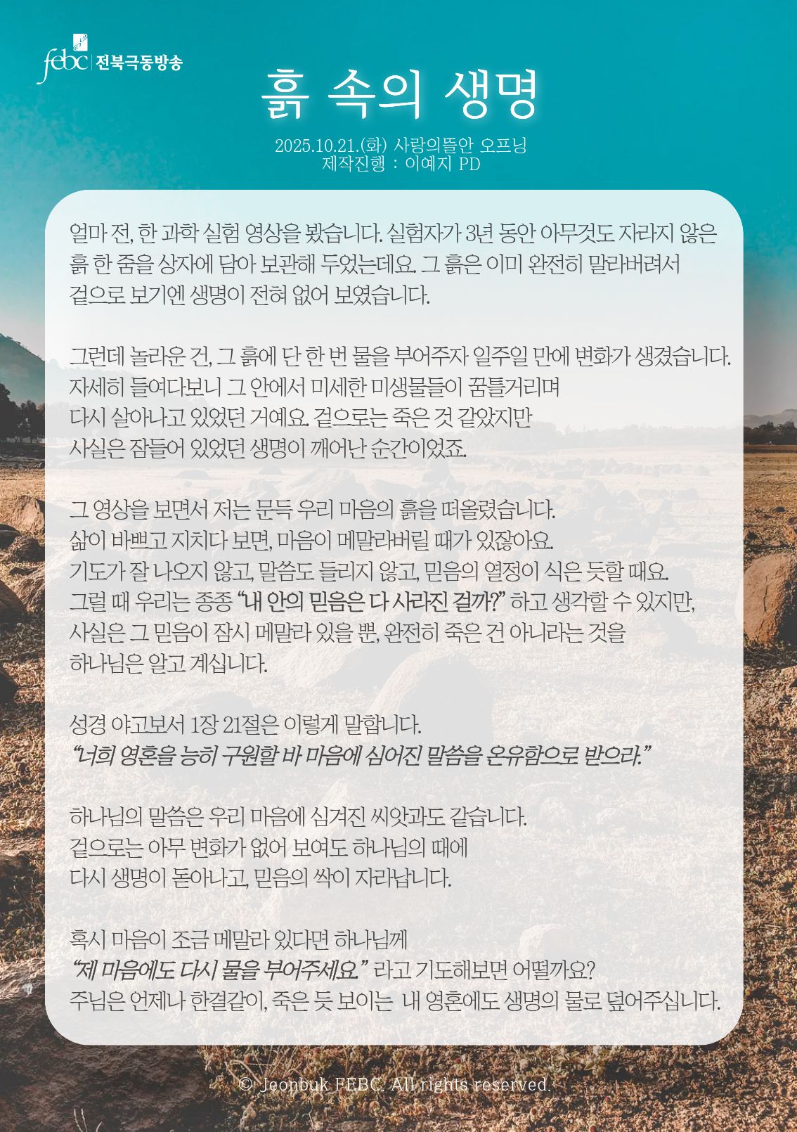 [전북] 25.10.21.(화) 사랑의뜰안 오프닝 "흙 속의 생명"
