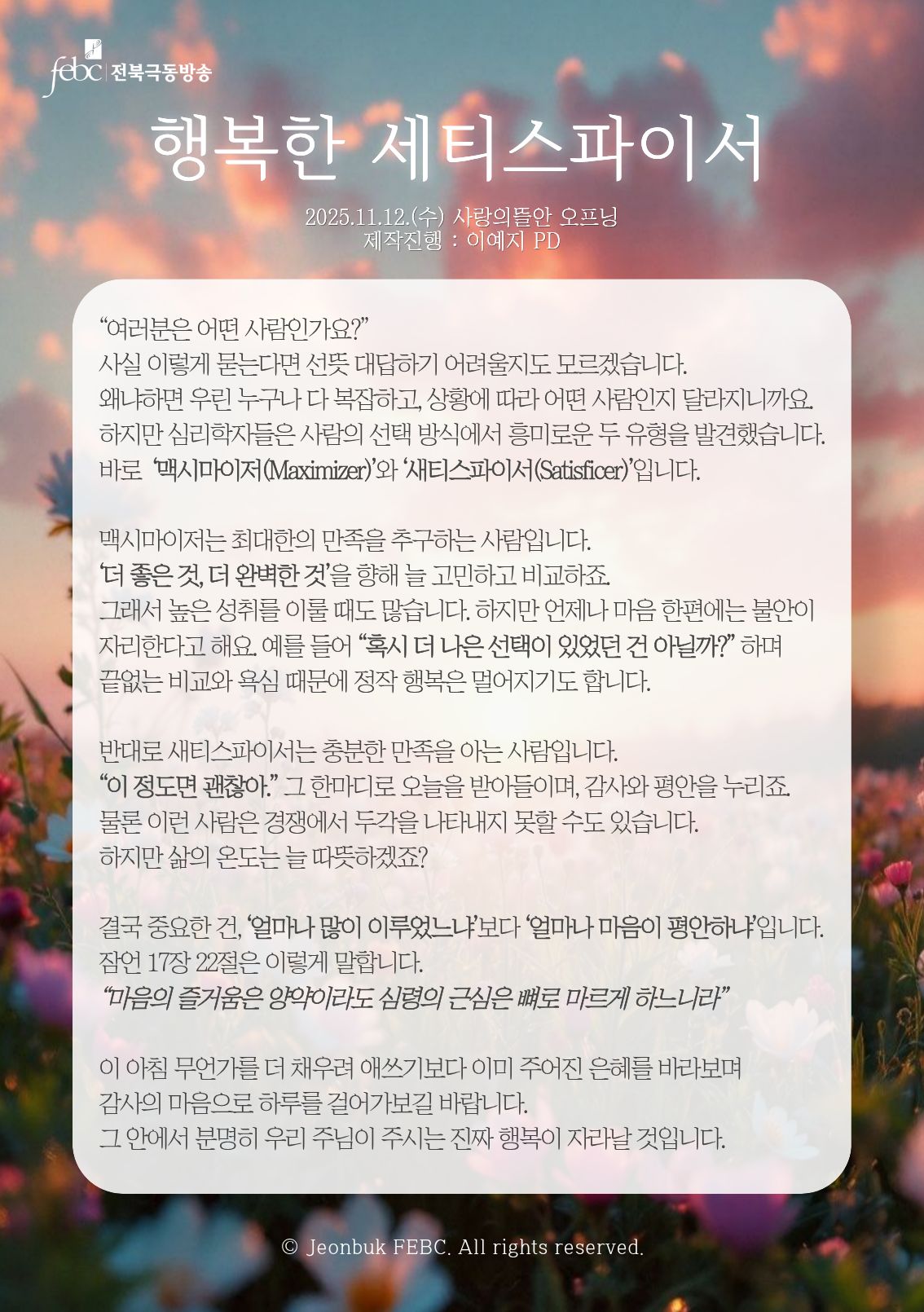 [전북] 25.11.13.(목) 사랑의뜰안 오프닝 "선을 행하는 삶"