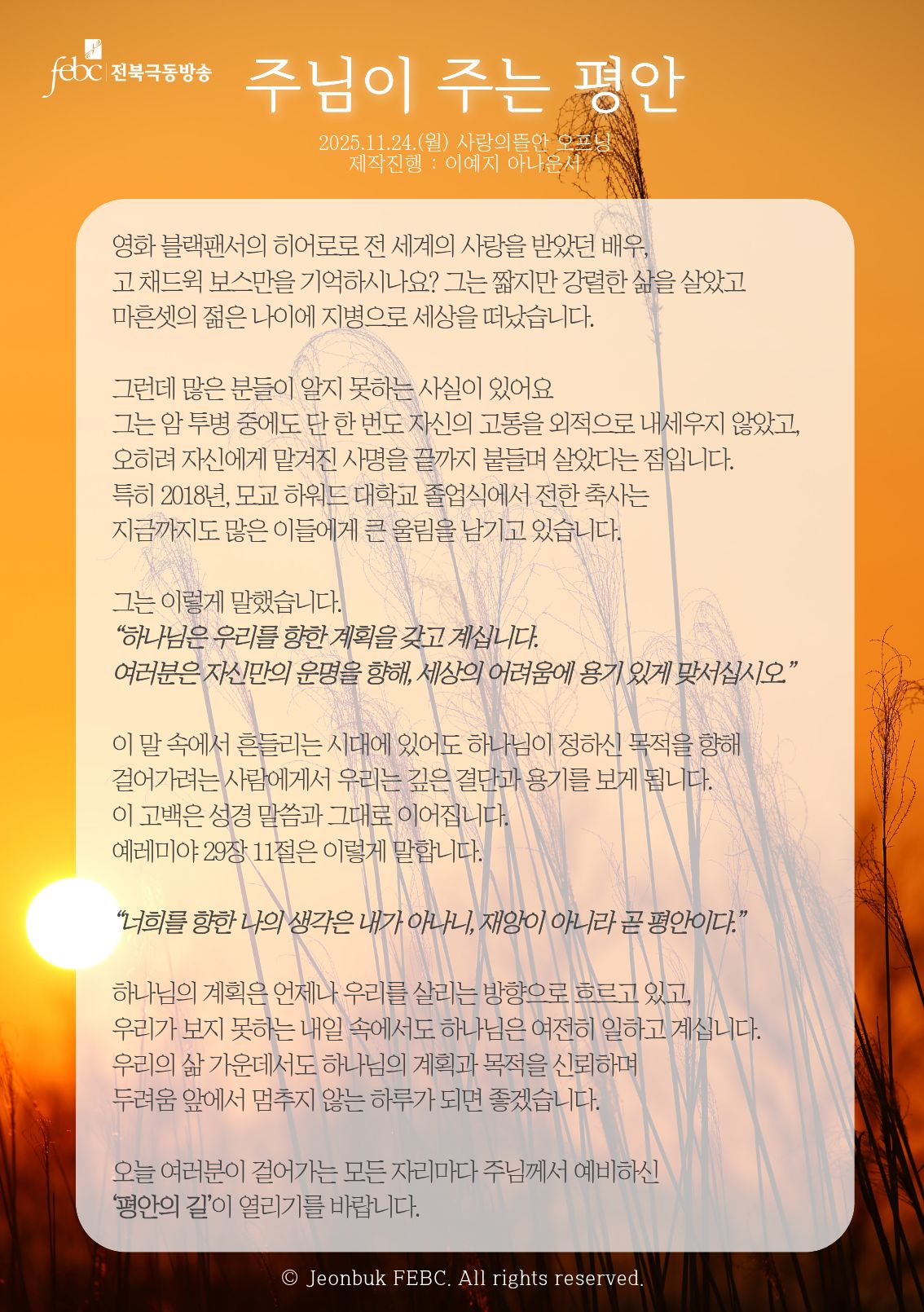 [전북] 25.11.24.(월) 사랑의뜰안 오프닝 "주님이 주는 평안"