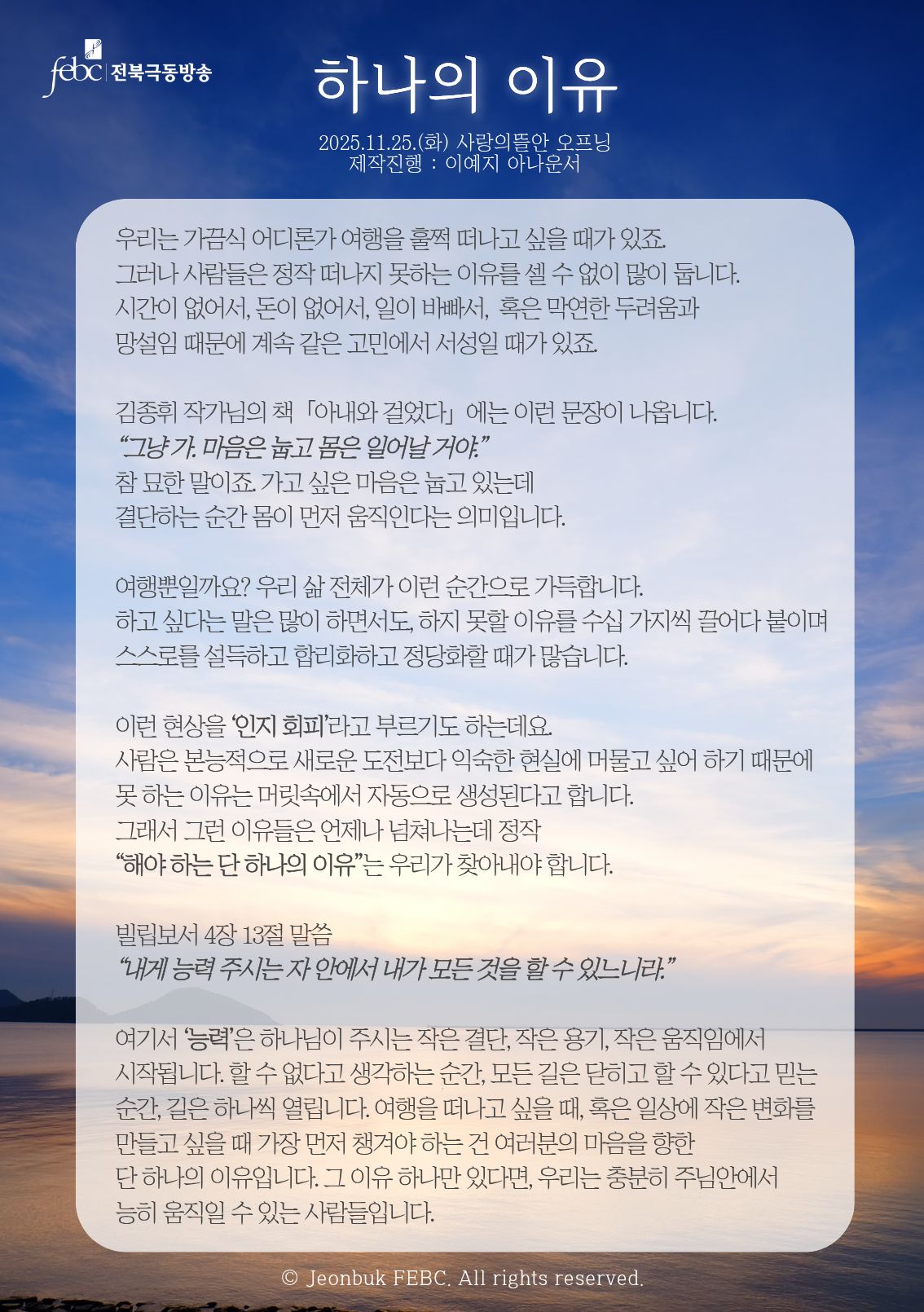 [전북] 25.11.25.(화) 사랑의뜰안 오프닝 "하나의 이유"