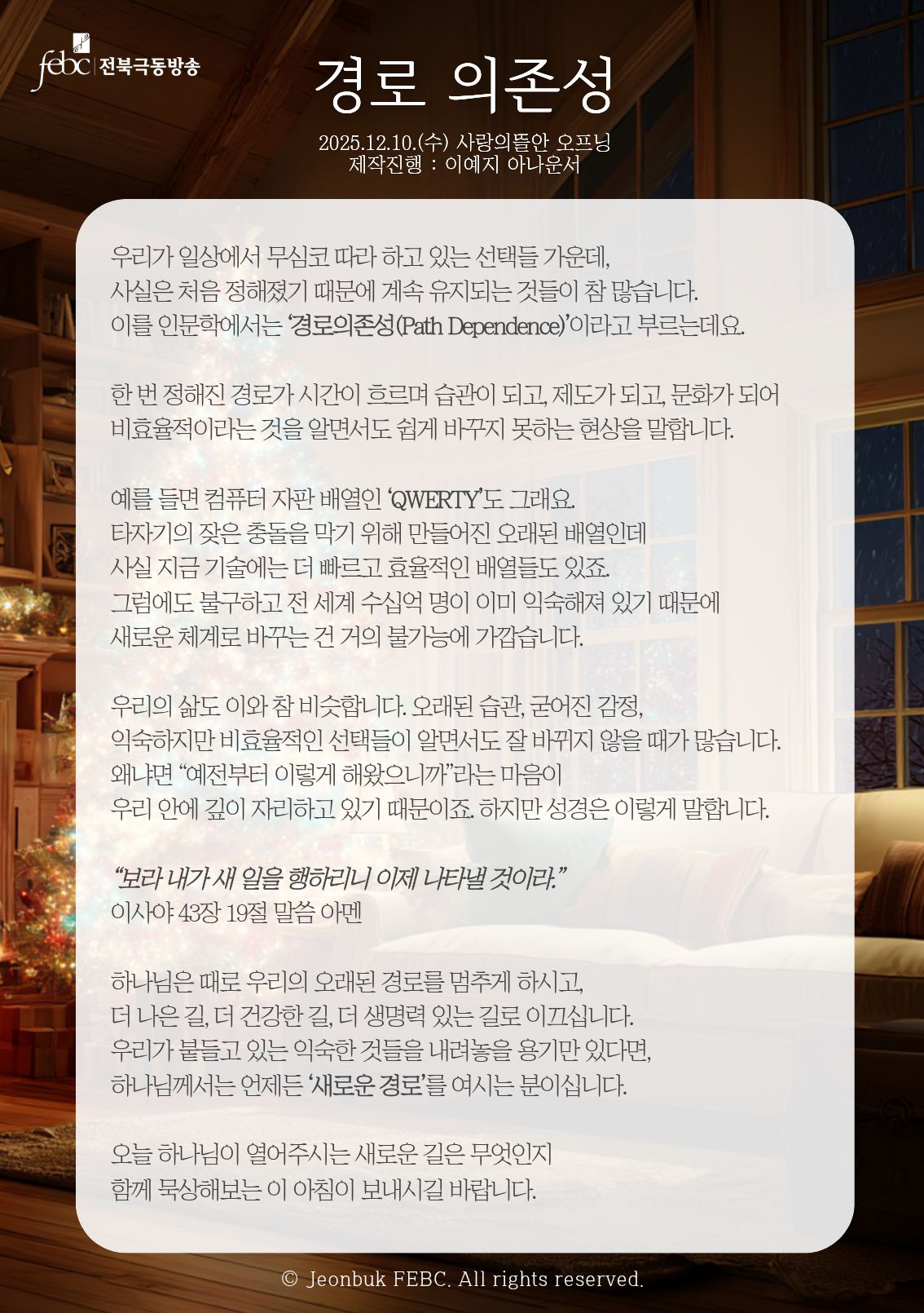 [전북] 25.12.10.(수) 사랑의뜰안 오프닝 "경로 의존성"