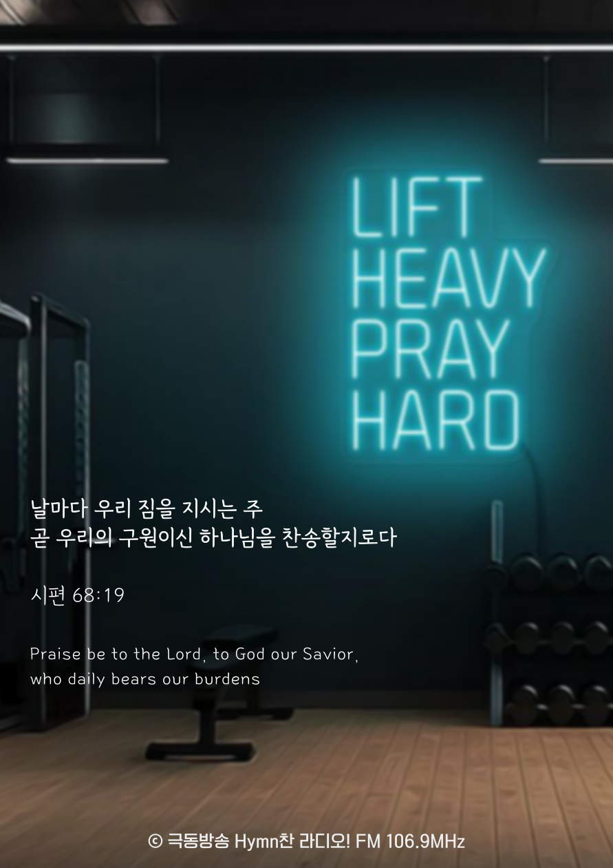 우리가 드는 벤치프레스보다, 덤벨보다 더 무거운 죄의 짐을 매일 지시는 분이 있습니다! 우리의 죄의 짐을 매일 지고 가시는 예수 그리스도. 우리 주님이시죠!
