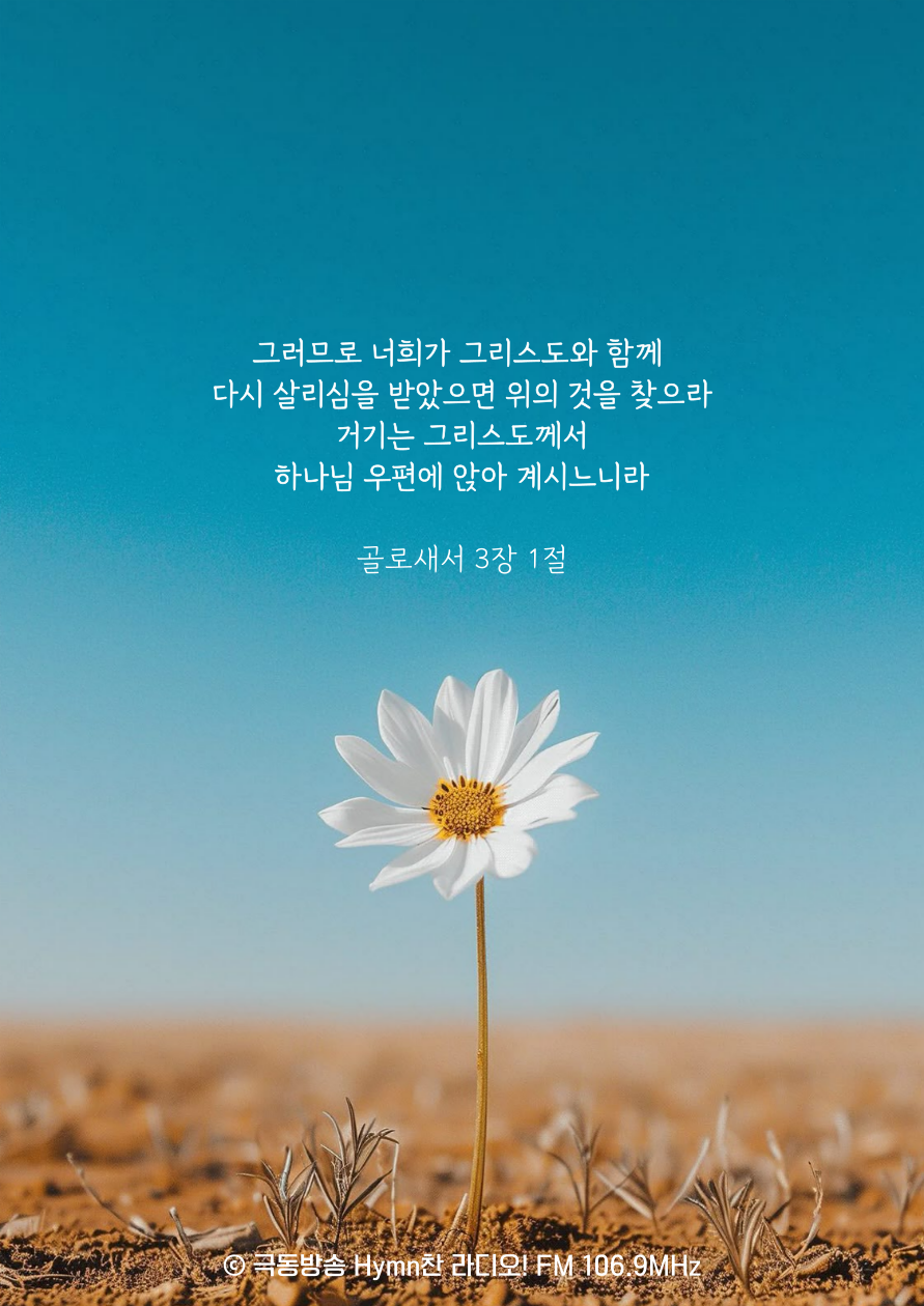 그러므로 너희가 그리스도와 함께 다시 살리심을 받았으면 위의 것을 찾으라 거기는 그리스도께서 하나님 우편에 앉아 계시느니라