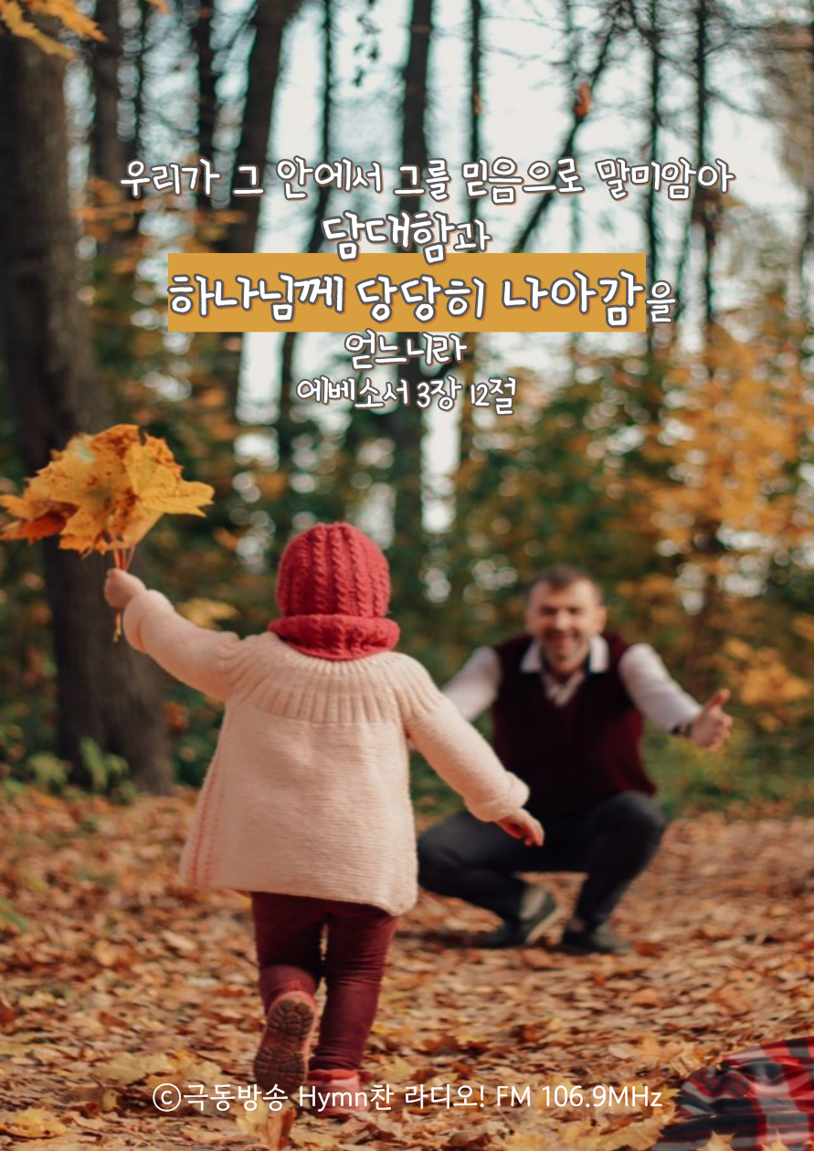 오늘도 당당히 하나님께 나아가는 하루 되기를 바랍니다.