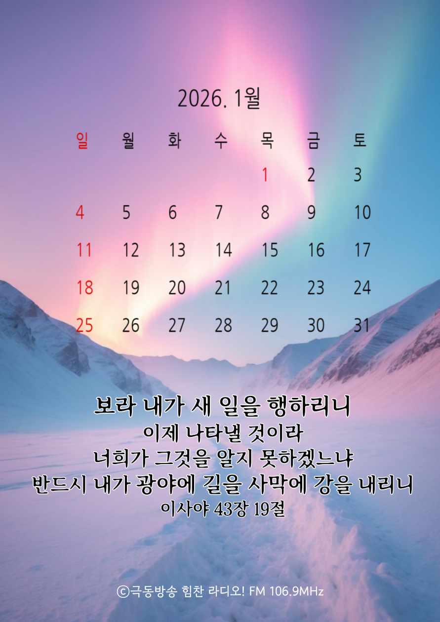 2026년 1월의 힘찬 말씀 달력