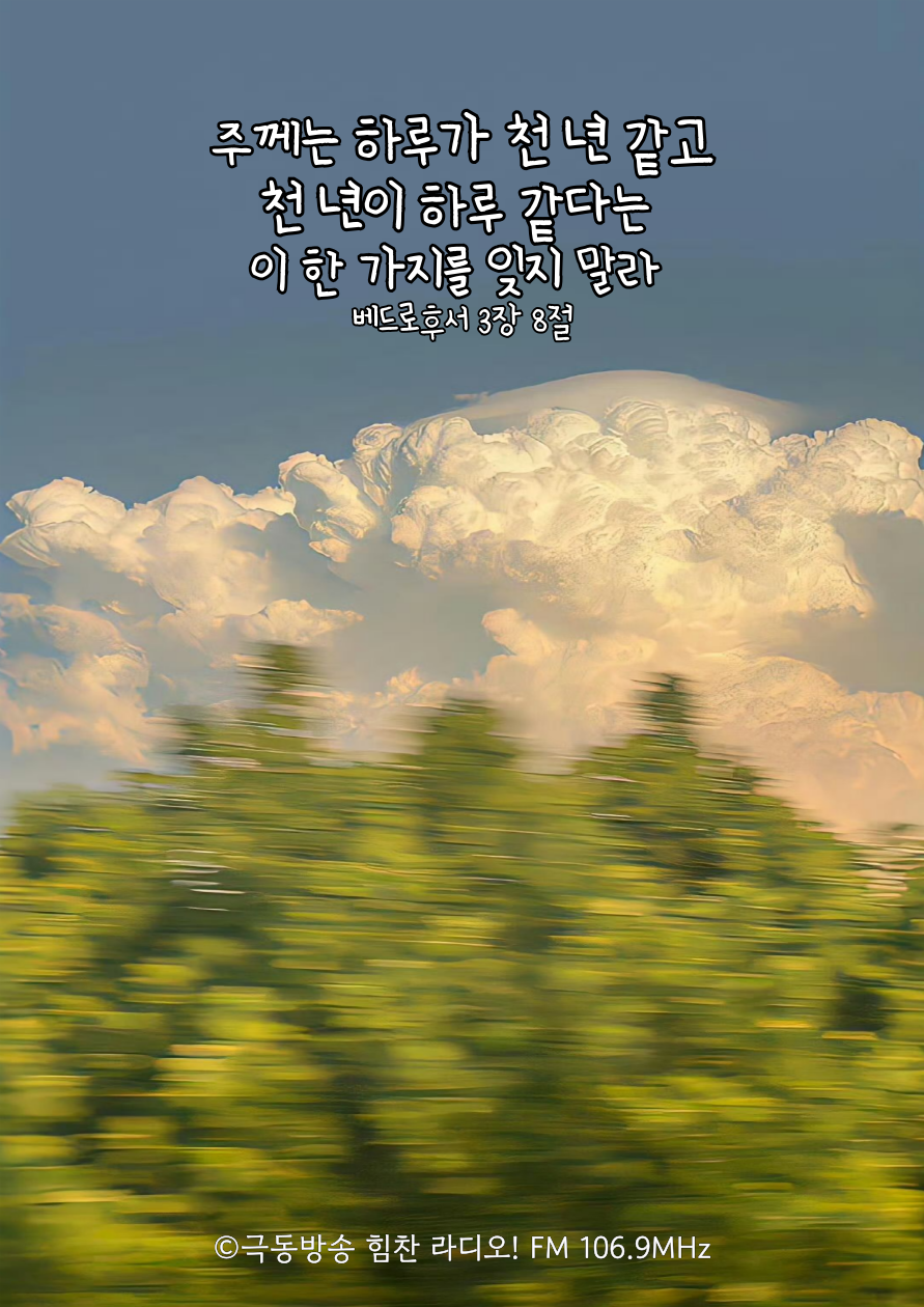 오늘도 시간보다 크신 하나님께 감사드리며 힘찬라디오 시작합니다.